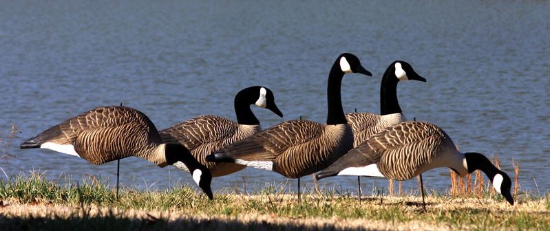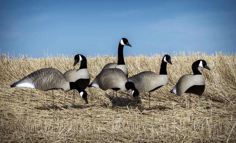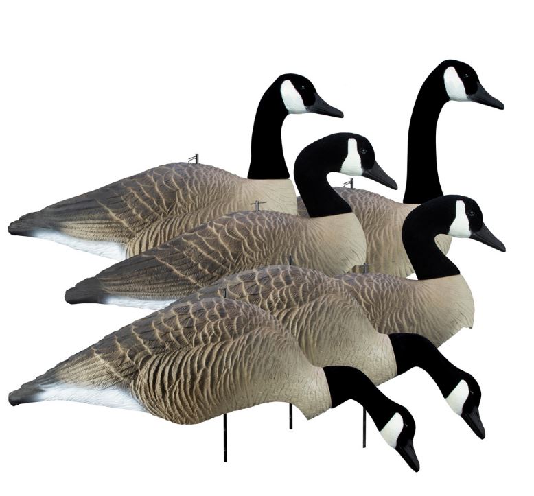 Lifelike, ultra-lightweight and durable, these hard-body Canada Flocked Head Wobblers are a lethal tool when it comes to hunting honkers. These decoys come alive in the field, offering tons of great movement and lifelike realism. Beautiful feathering and realistic paint scheme make these Wobblers a great value. The magnum size is slightly larger than an average live bird. Higdon's highly detailed, proprietary UV painting process and deep realistic carving techniques highlight each individual feather and minimize unnatural glare. Our paint won't peel or fade, so your decoys will look great season after season. Upright and Low head decoys have removable swivel heads. Package contents: 1 Tru Sentry, 1 Half Sentry, 1 Relaxed, 1 Tru Walker and 2 Tru Feeders. As a Ducks Unlimited Official Licensed Product, a percentage of your purchase will go toward wetland conservation.