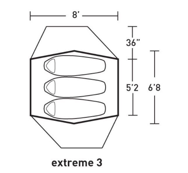 The Extreme is a free standing aluminum pole tent, with a configuration that is extremely strong and sturdy. The 3-pole design gives you more "framework" to combat Mother Nature when she decides to send you a little stronger storm than normal. Assembly is easy with pole clips that quickly snap over the tent poles. The polyester fly and floor are urethane coated, with factory sealed seams for maximum weatherproofness. A door on each side of the tent makes getting in and out of the tent easy. You also get two large vestibules that you can use for extra gear storage. The vestibules also serve as automatic guy-out points when the weather gets a little nasty. The fly buckles to the tent, offering a much more secure attachment when compared to elastic cord. Extra large #8 zippers on the doors and vestibules add to the durability. Mesh roof vents increase ventilation and improve star gazing.