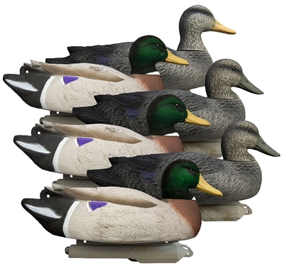 Endorsed by World Open Meat Duck Calling Champion, Kelley Powers. This Super Oversized, Unsinkable High-Contrast Package Includes: 3 Flocked Head Battleship Mallard Drakes & 3 Battleship Black Ducks with swivel heads and weighted, self-righting keels. Foam-Filling virtually makes it bulletproof. Keel allows short stringing decoys for shallow water. Higdon's highly detailed, proprietary UV painting process and deep realistic carving techniques highlight each individual feather and minimize unnatural glare, even when decoys are wet. Our paint won't peel or fade, so your decoys will look great season after season, whether you leave your decoys out all season or pick up after every hunt. As a Ducks Unlimited Official Licensed Product, a percentage of your purchase will go towards wetland conservation.