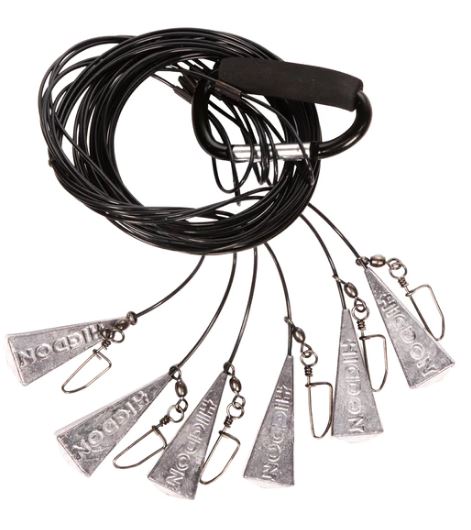 One of the easiest ways to anchor your decoys. Lines will not tangle and when its time to pick-up, just grab the looped end of the cord and it will slide the anchor up around the decoy. Nylon stiff non-tangle line.