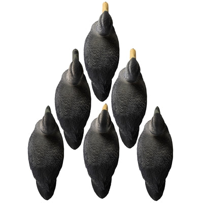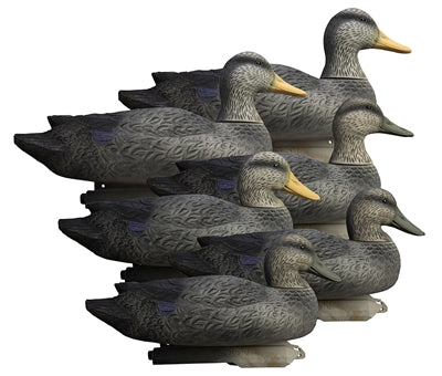 Variety pack comes with 2 upright drakes, 2 relaxed drakes, 1 relaxed hen & 1 upright hen. Package contains 6 Black Duck decoys.
