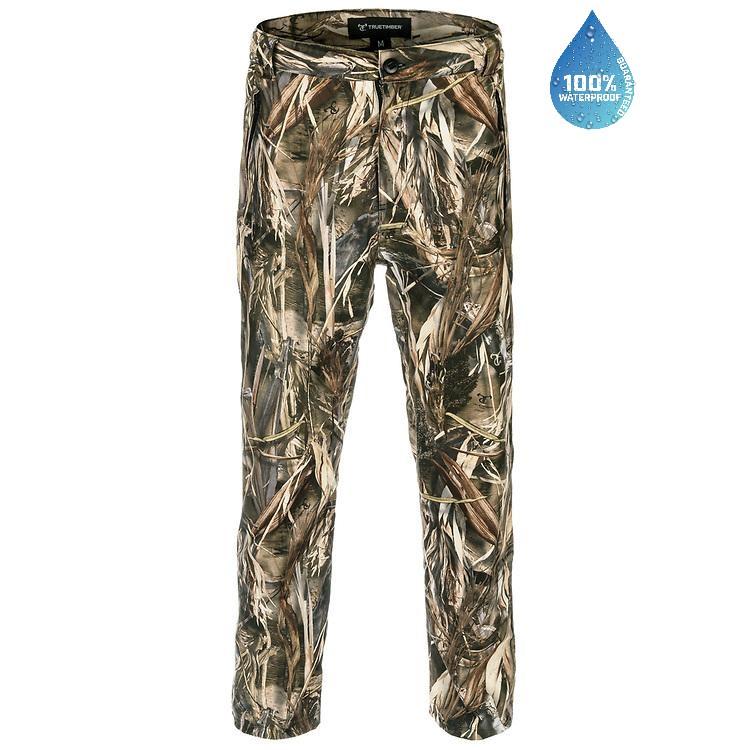 The TrueTimber Drencher II series has proven to withstand natures harsh elements. It is 100% polyester and waterproof. The brushed fabric will keep you quite and dry.