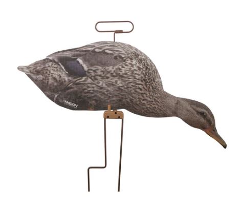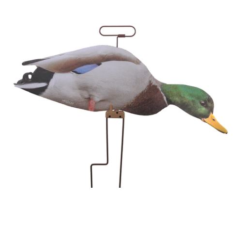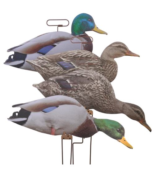 The easy and convenient way to add motion to your spread. Higdon Outdoors MOTION FLATS Silhouette decoys are sturdy, lightweight, easy to carry, easy to deploy, and lightning fast to pick up. They offer realistic high resolution printed detail with a finish that won't fade and is resistant to glare. Higdon's innovative motion stake system allows your silhouette decoys to rotate up to 145 degrees in even the slightest wind. 12-Pack. Box includes 12 Tall Motion Stake systems, and 12 Mallard Decoys: 3 Drake Walkers, 3 Drake Feeders, 3 Hen Walkers, and 3 Hen Feeder decoys.