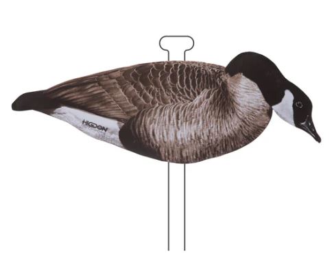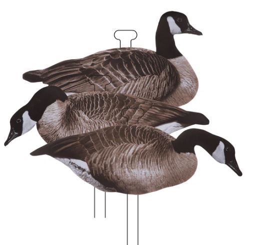 Higdon Outdoors FLATS Canada Goose Silhouette 12 PACK decoys are sturdy, lightweight, easy to carry, easy to deploy, and lightning fast to pick up. They offer realistic high resolution printed detail with a finish that won't fade and is resistant to glare. Higdon's offset stakes use tension to ensure your decoys will stay in place. 12-Pack. Box includes 12 offset Stakes, and 12 Magnum Size Canada Goose Decoys: 4 Walkers, 4 Semi-Feeders and 4 Feeder decoys.