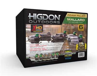 Sometimes the best things come in the smallest packages. These are best looking, most lifelike standard size decoys we have ever produced... at a value that is second to none! These small mallard floaters have taken a lifetime of experience to develop. Foam filling make these unsinkable, so you never have to worry about shooting your decoys. XHD Hyper-Feathering uses bright, high-contrast paint and deep, textured carving to create a lifelike feel. Higdon's new forward-weighted keel helps these decoys sit naturally in the water, and feature an innovative new front clip for easy short-stringing. Multiple postures and head positions create a diverse, realistic cluster and makes any spread come to life. These decoys are slightly smaller than average real ducks, making them the smallest, lightweight, packable and affordable decoys in the Higdon lineup. Higdon's highly detailed, proprietary UV painting process and deep realistic carving techniques highlight each individual feather and minimize unnatural glare, even when decoys are wet. Our paint won't peel or fade, so your decoys will look great season after season. Package includes: 2 Upright Drakes, 2 Resting Drakes, and 2 Resting Hens. As a Ducks Unlimited Official Licensed Product, a percentage of your purchase will go toward wetland conservation.